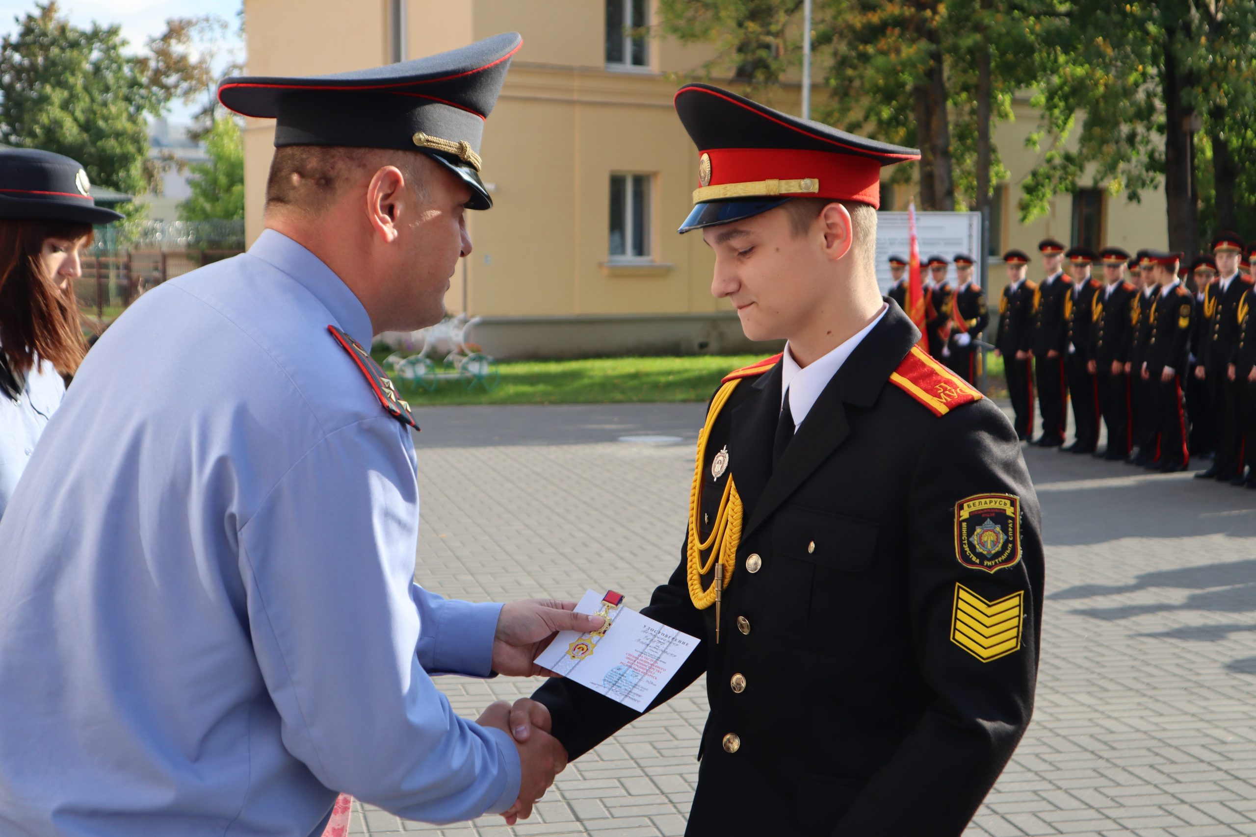 В Специализированном лицее МВД состоялся торжественный ритуал вручения наград и благодарностей. Награждаемых поздравляло руководство лицея, а также первый секретарь Партизанского РК ОО «БРСМ» г. Минска Виктория Чаускина.