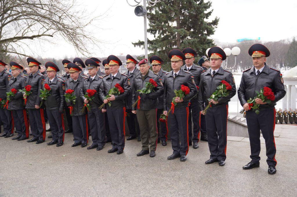 По традиции, они начались у памятника сотрудникам органов внутренних дел и военнослужащим внутренних войск, погибшим при исполнении служебного и воинского долга, церемонией возложения венков и цветов.