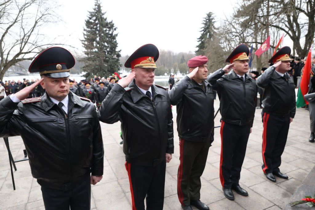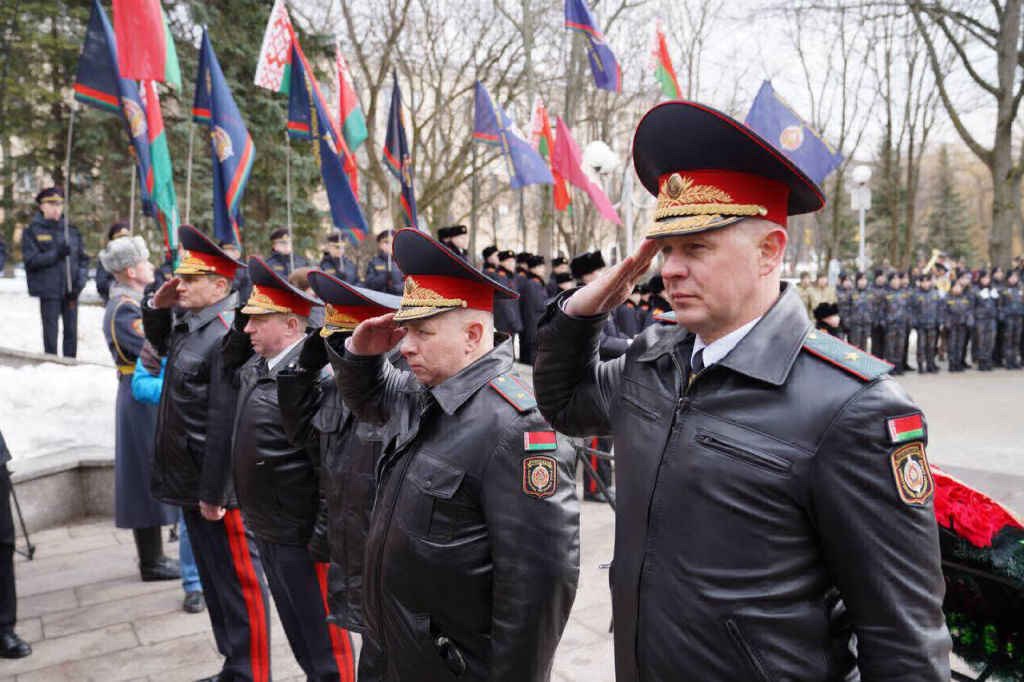 В церемонии во главе с руководителем милицейского ведомства также приняли участие заместители Министра, начальники департаментов, подразделений центрального аппарата, ГУВД Мингорисполкома и областных УВД, ветераны органов внутренних дел и внутренних войск МВД, члены семей погибших сотрудников.