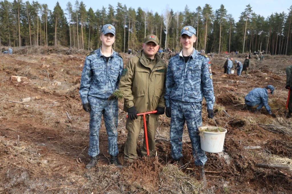 От старших товарищей не отставали курсанты, лицеисты, воспитанники военно-патриотических клубов. Плечом к плечу с ними — представители местной власти и работники Воложинского лесхоза.